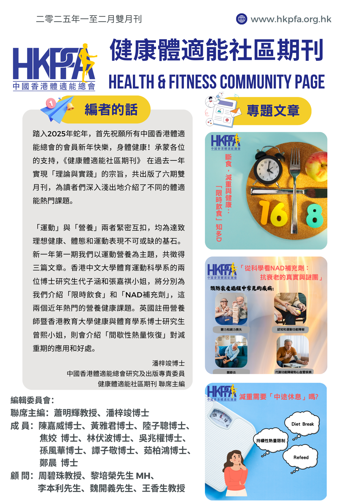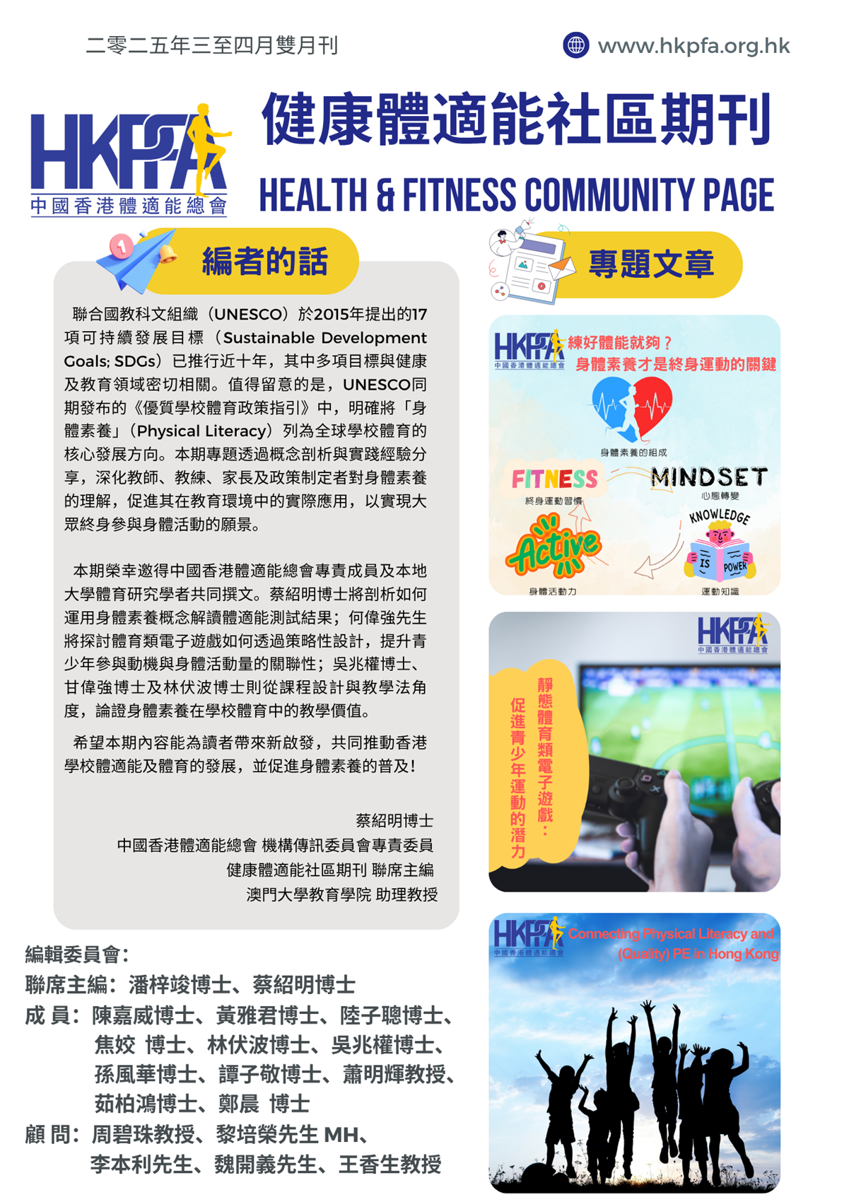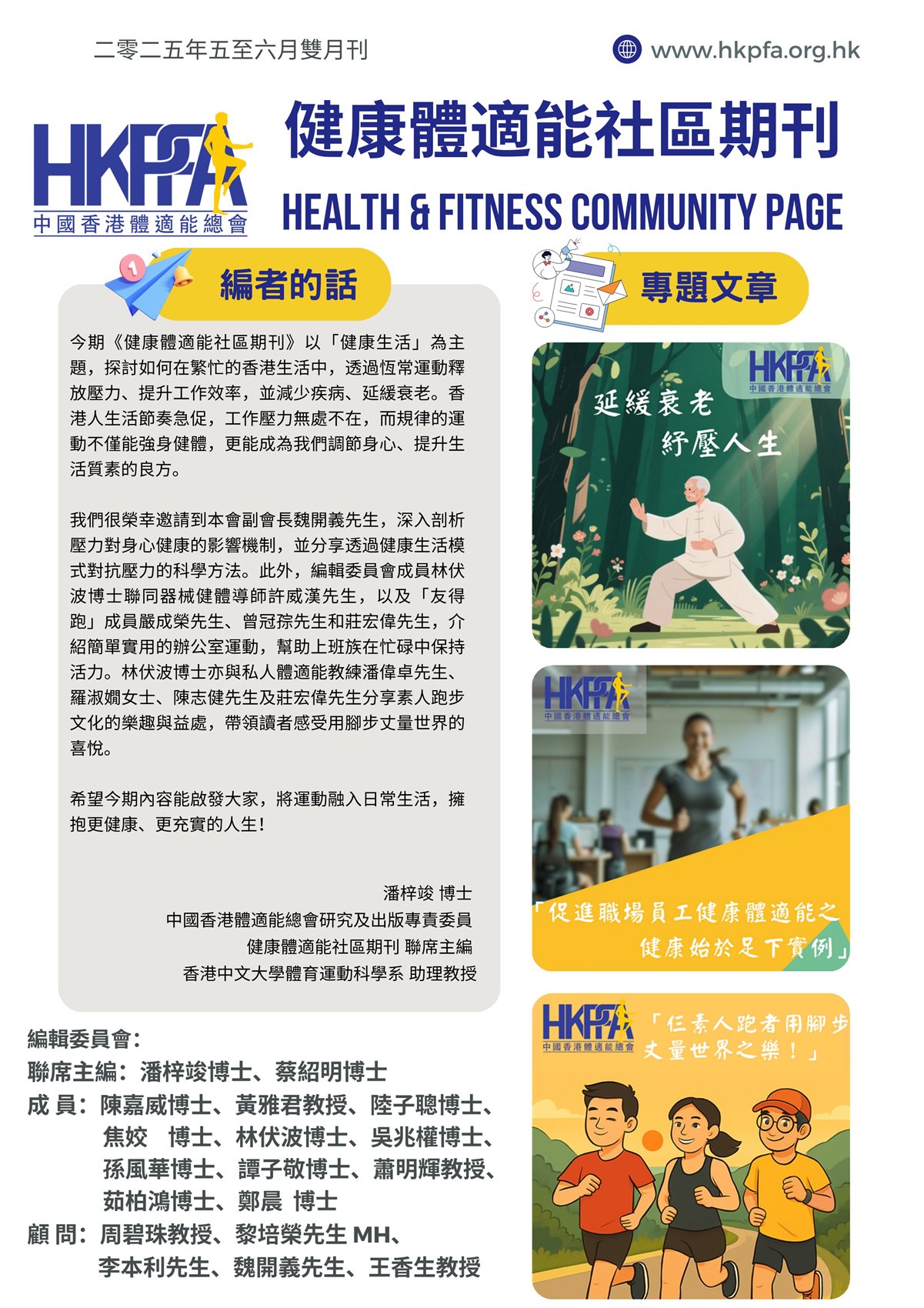 《健康體適能社區期刊》的宗旨是將時下最新的體適能資訊傳遞給廣大市民,提升健康和生活質量。
